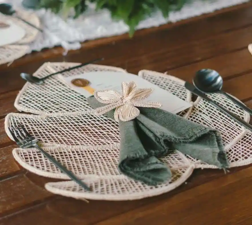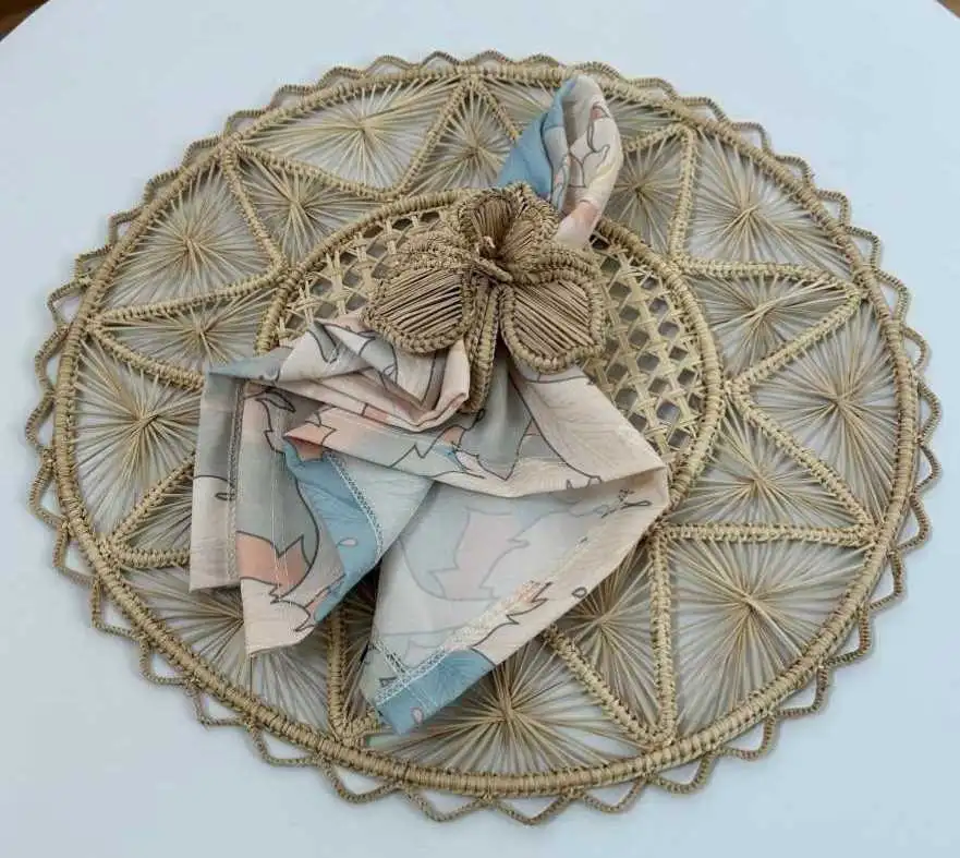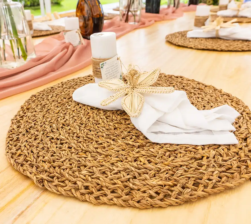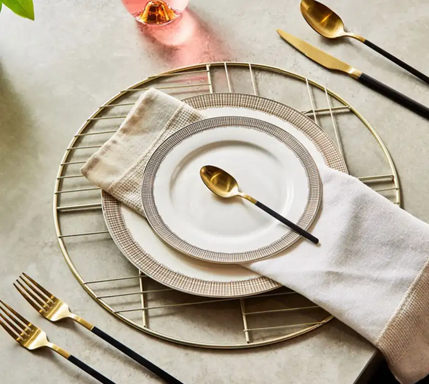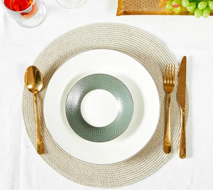 Plato base circular con tejido de hilo dorado, de 38 cms