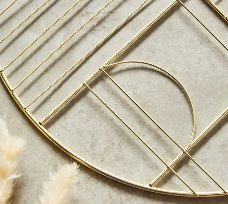 Plato base metálico diseño circular orbita, color dorado de 38 cms