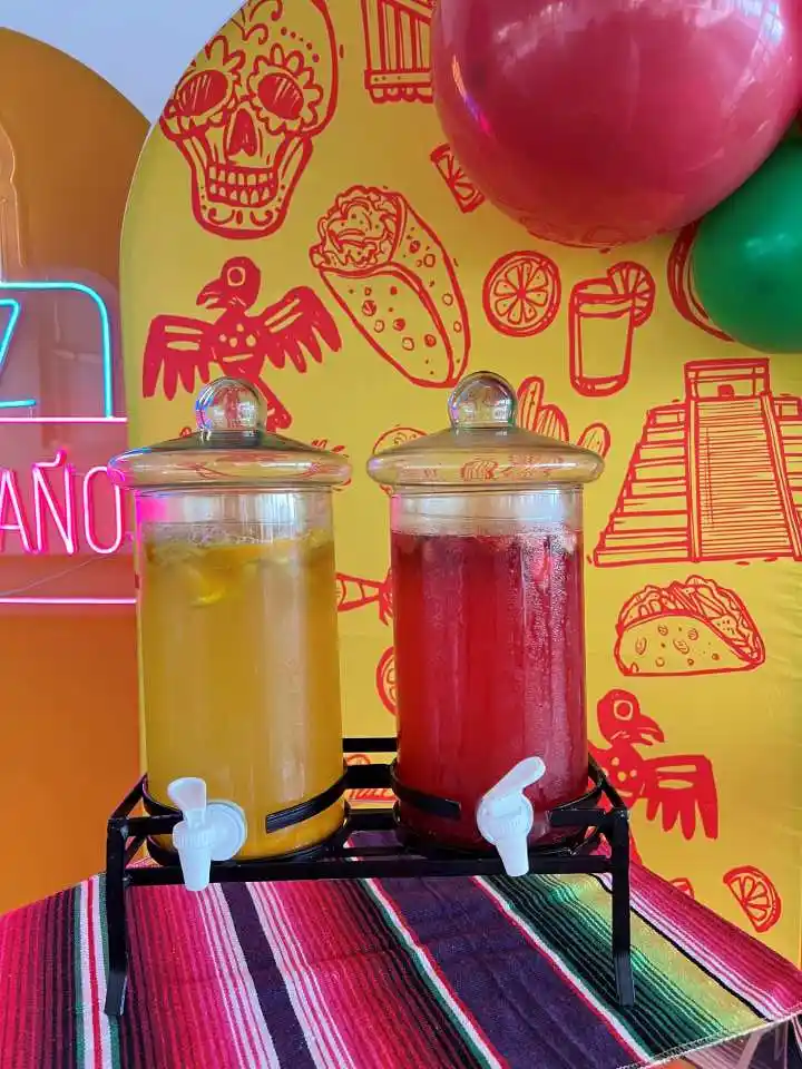 Set dispensador con base metálica y 2 contenedores de vidrio con capacidad de 2.5L cada una