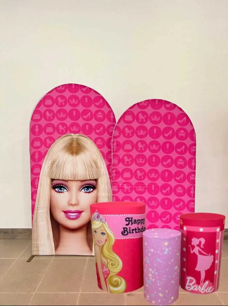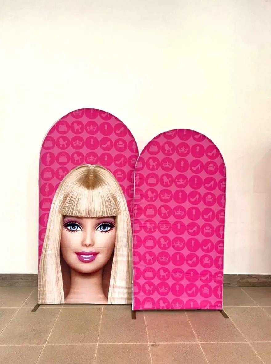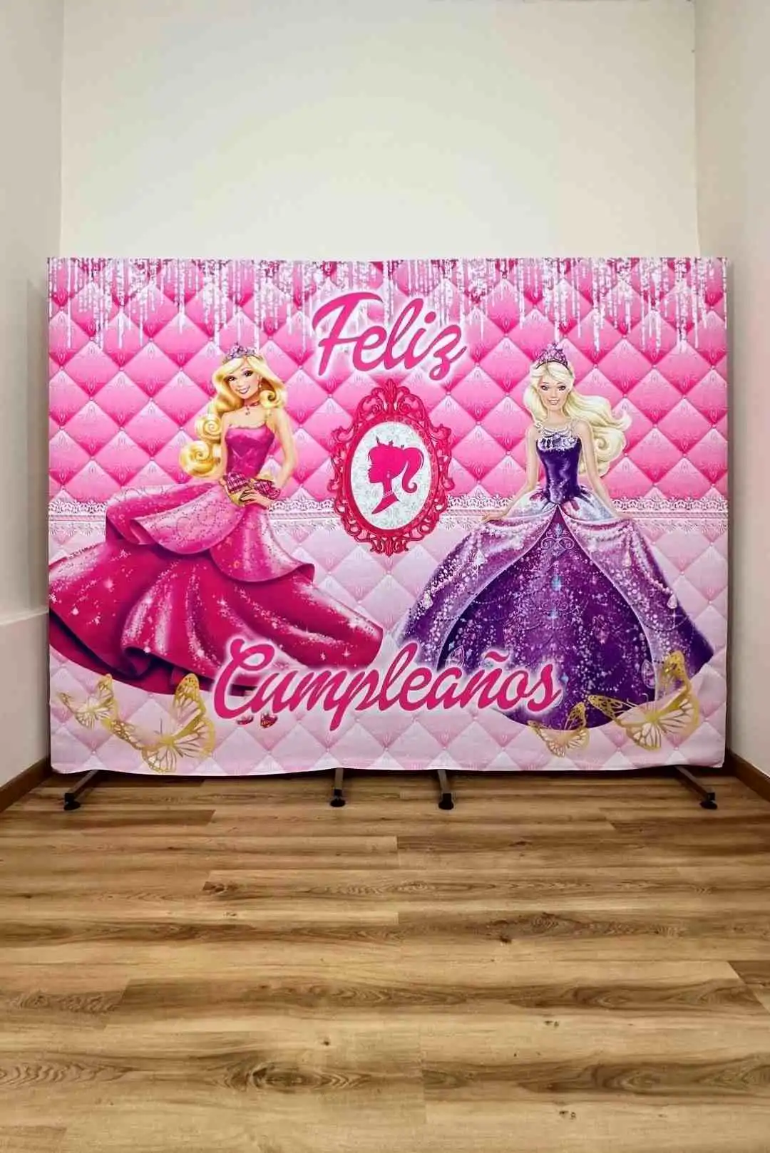 Backing metálico con forro de BARBIE de 180 cms de alto x 240 cms de ancho
