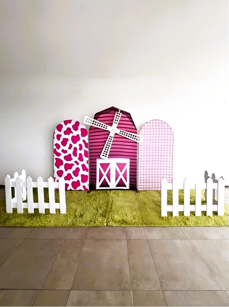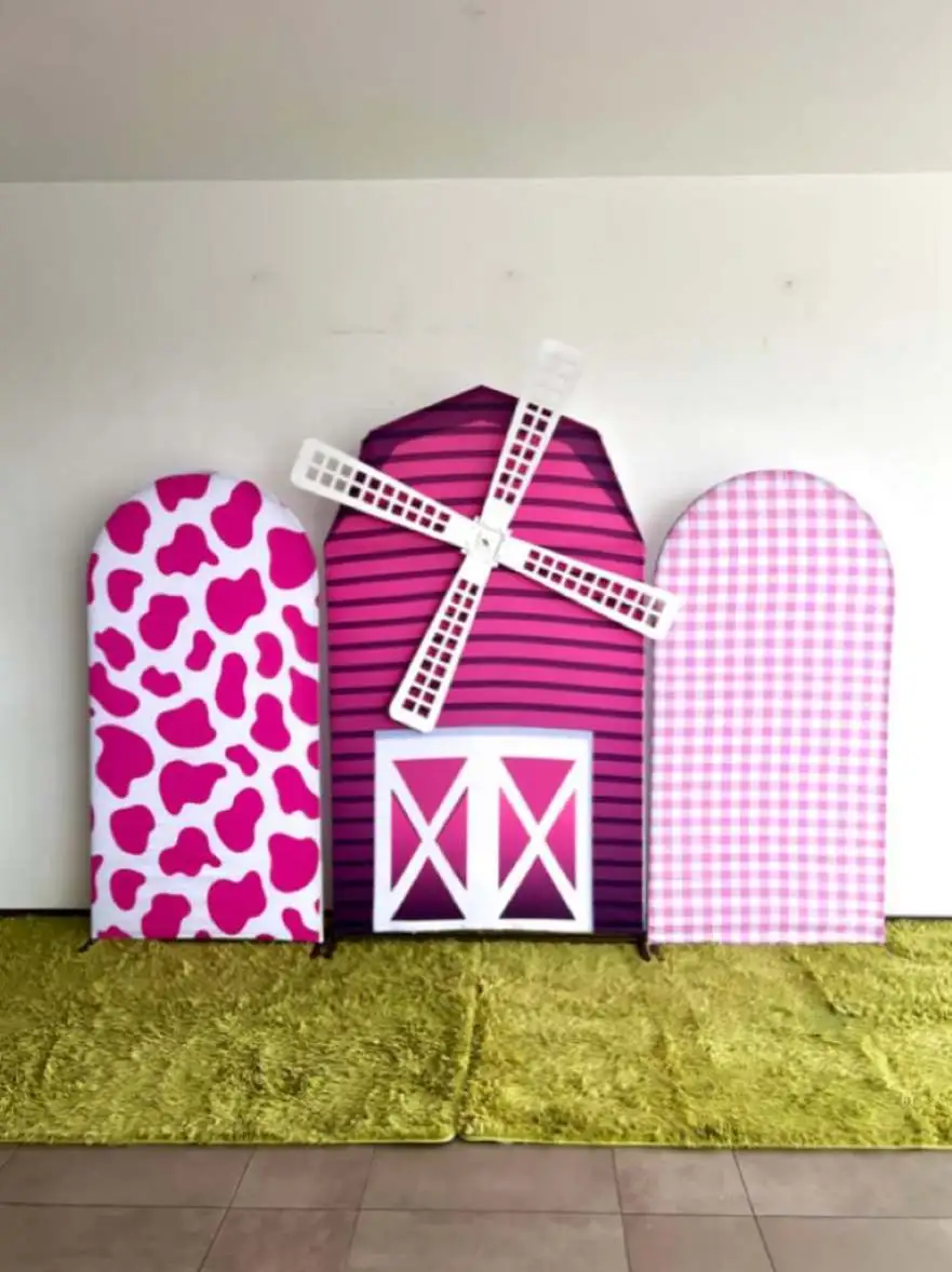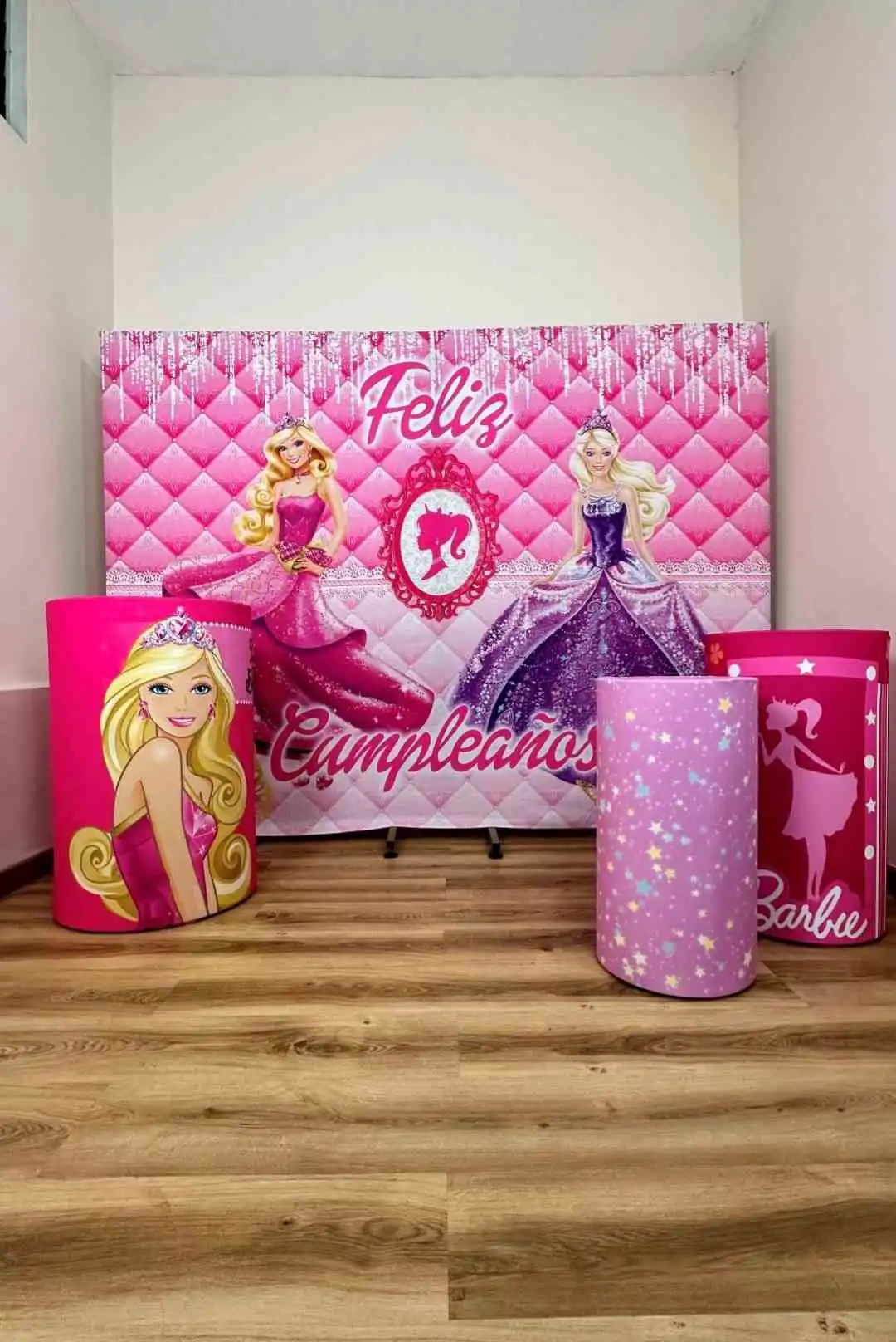 Backing metálico con forro de BARBIE de 180 cms de alto x 240 cms de ancho