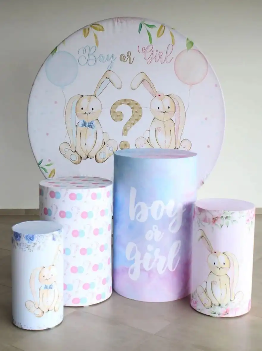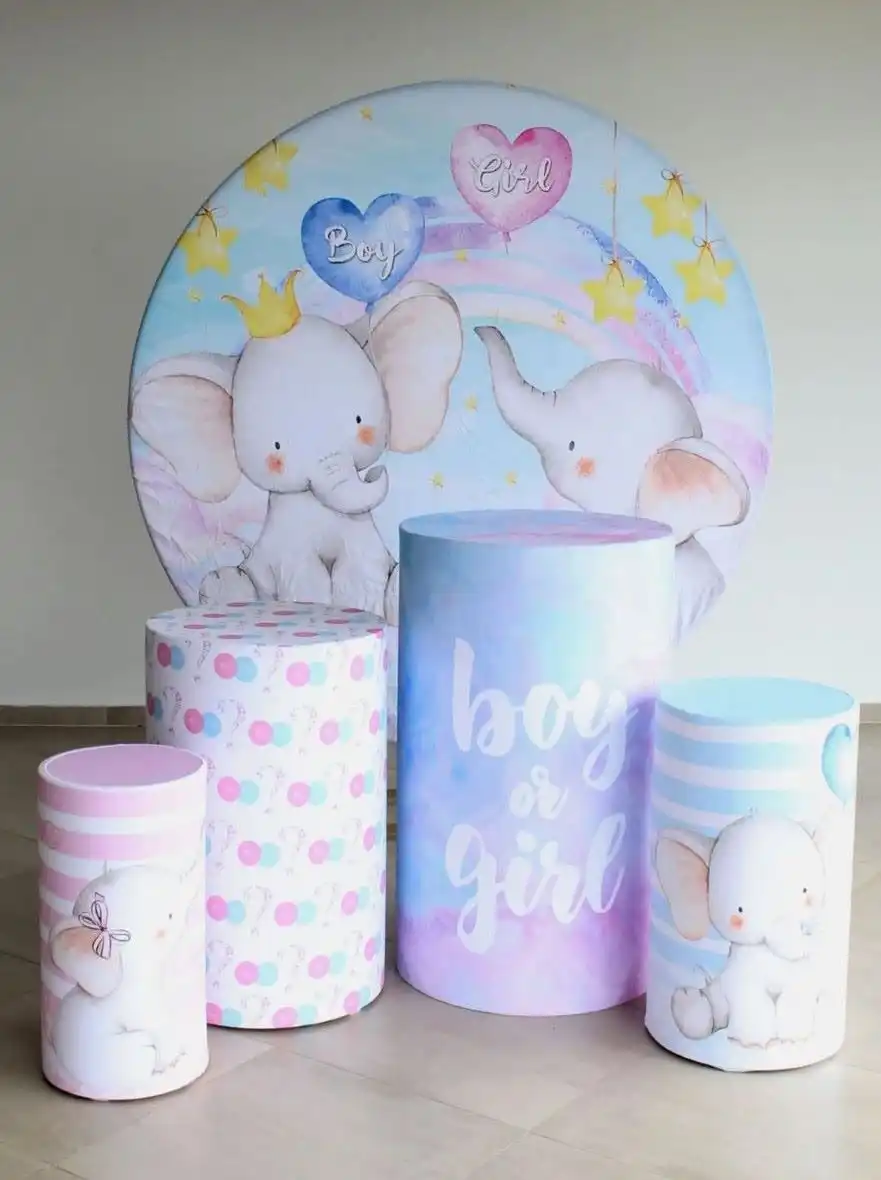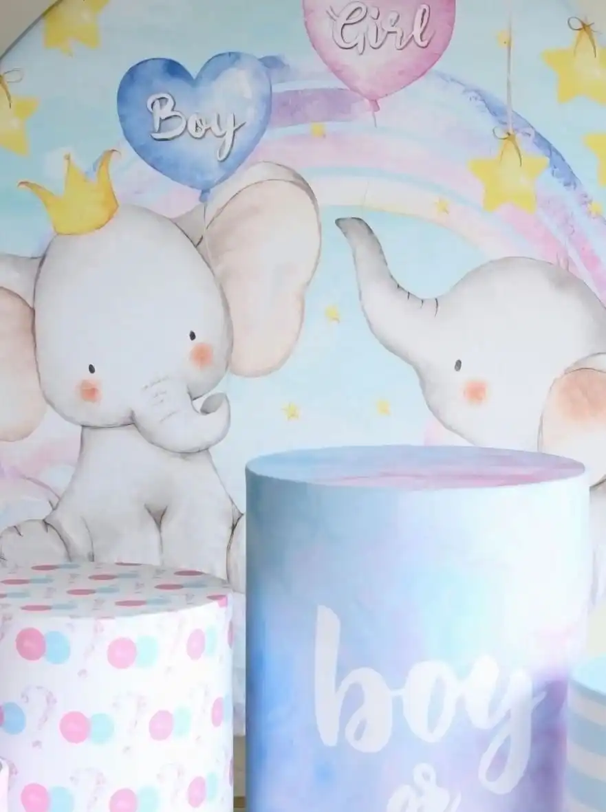 Backing circular + 4 cilindros con forros de descubrimiento de sexo ELEFANTES