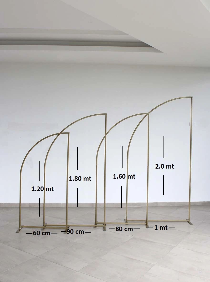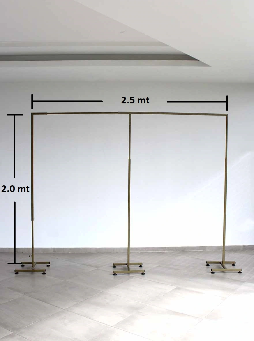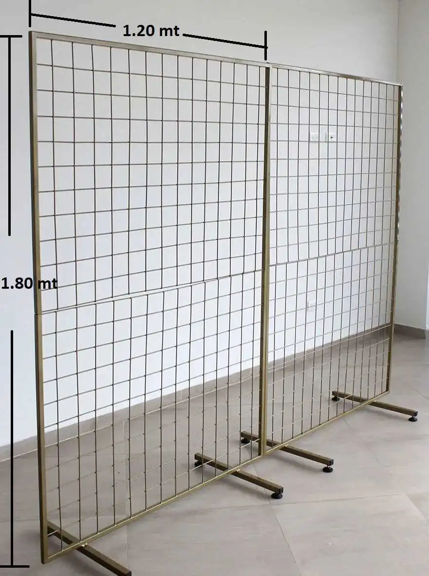 Set de Torre alta metálica con diseño rectangular, color dorado de 60 cms x 210 cms y de 50 cms por 190 cms (ancho x alto)