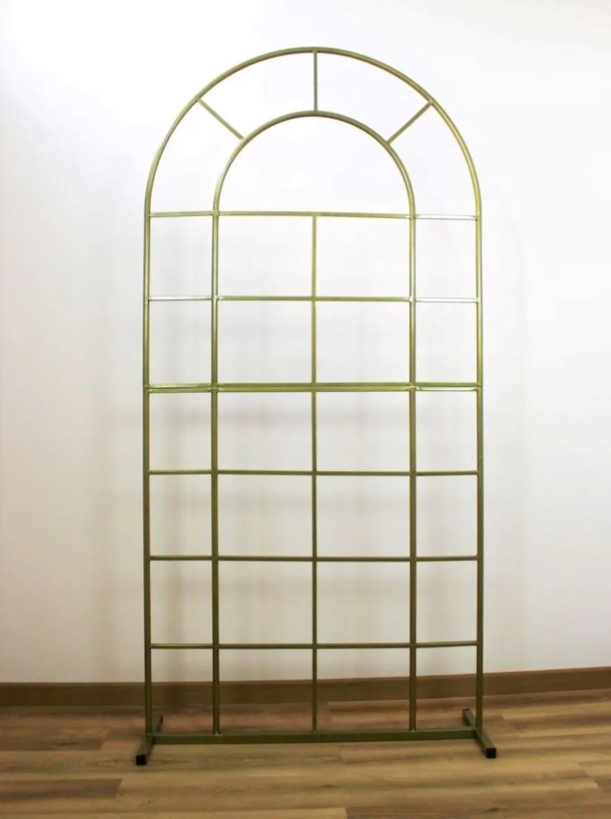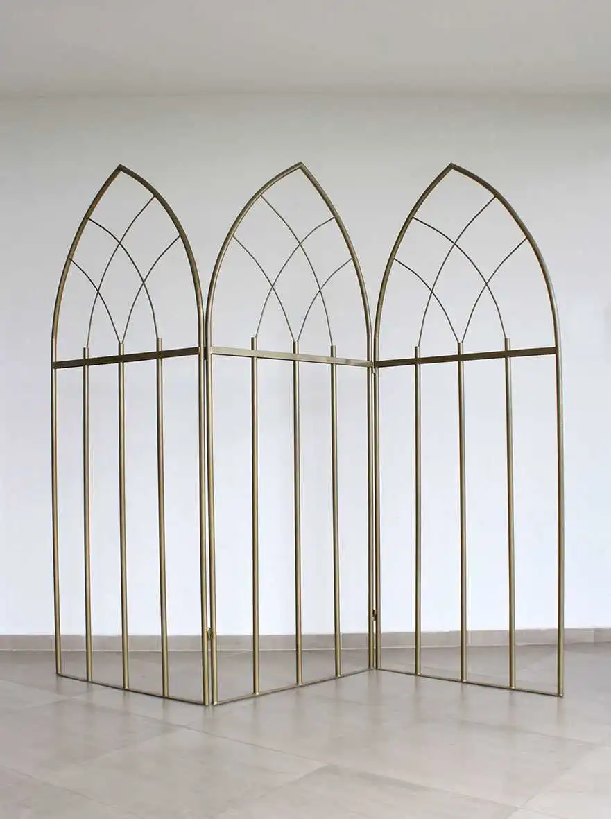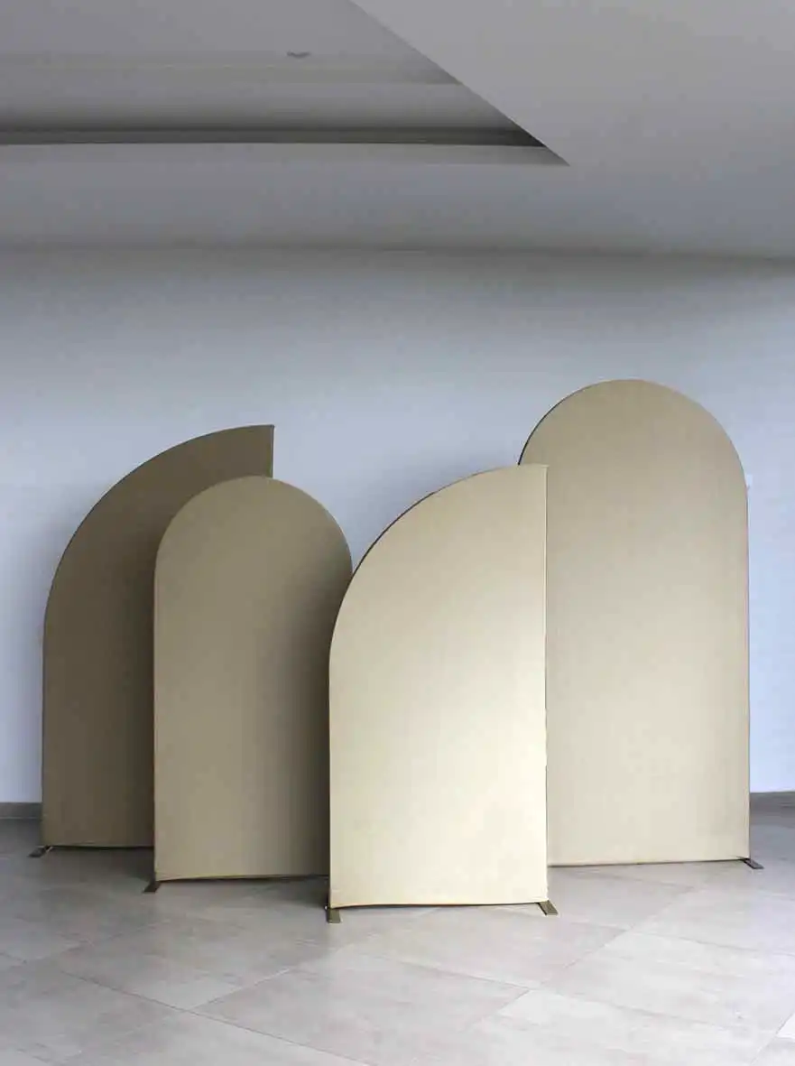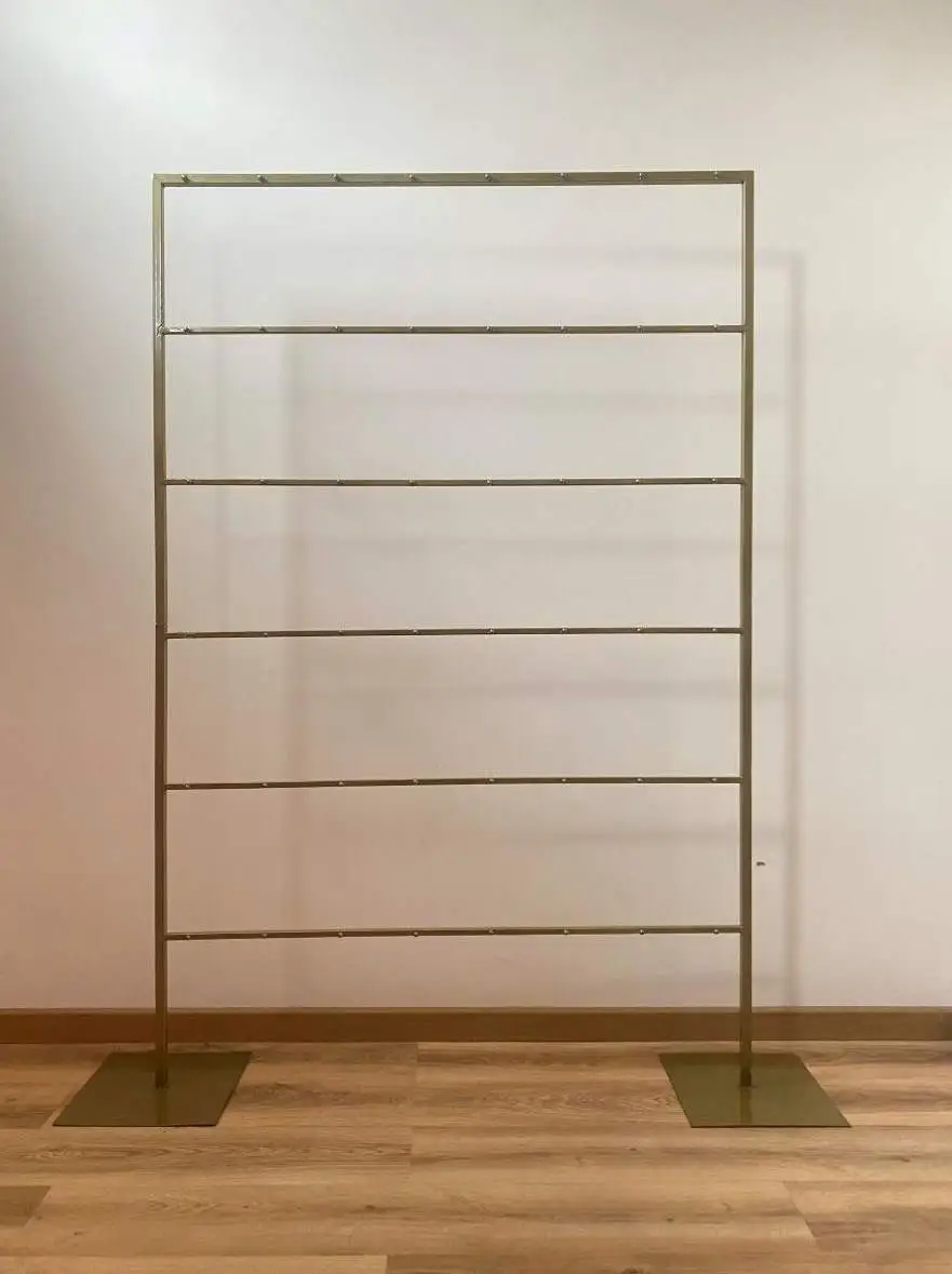 Set de Torre alta metálica con diseño rectangular, color dorado de 60 cms x 210 cms y de 50 cms por 190 cms (ancho x alto)