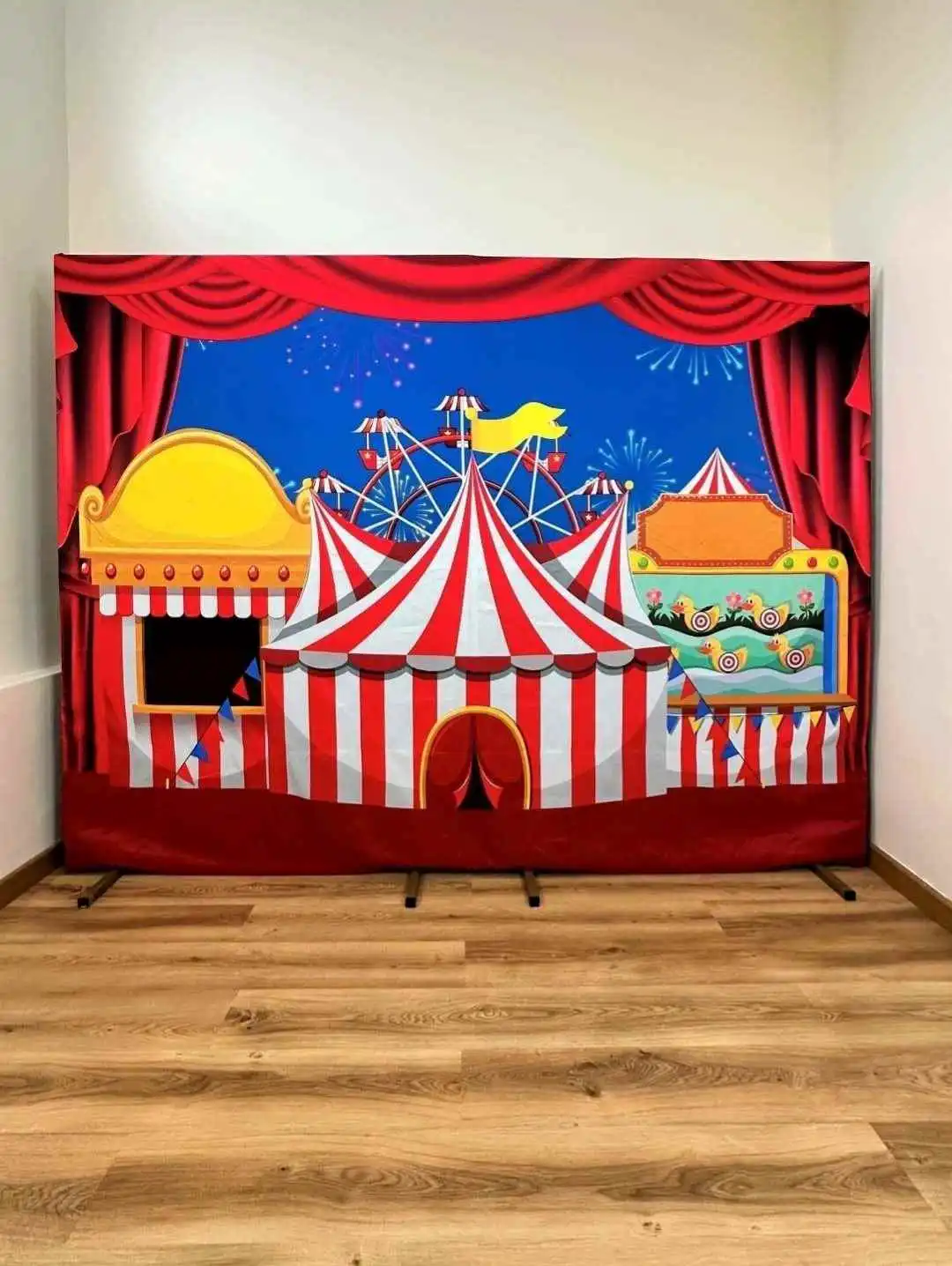 Backing metálico con forro de CIRCO de 180 cms de alto x 240 cms de ancho