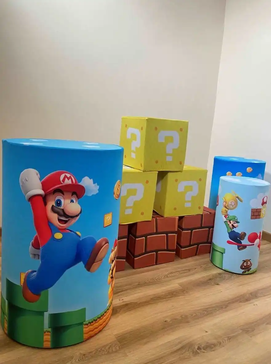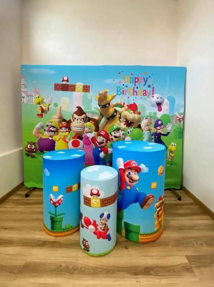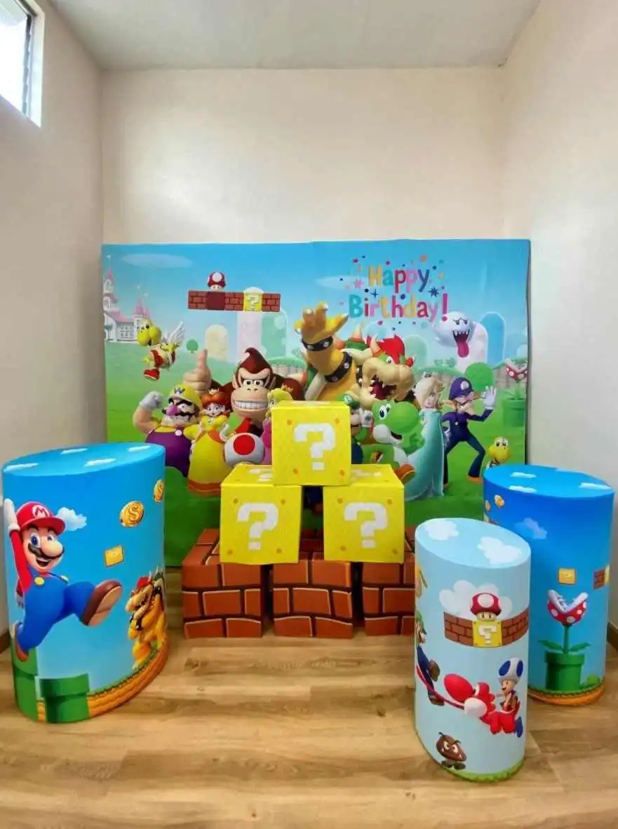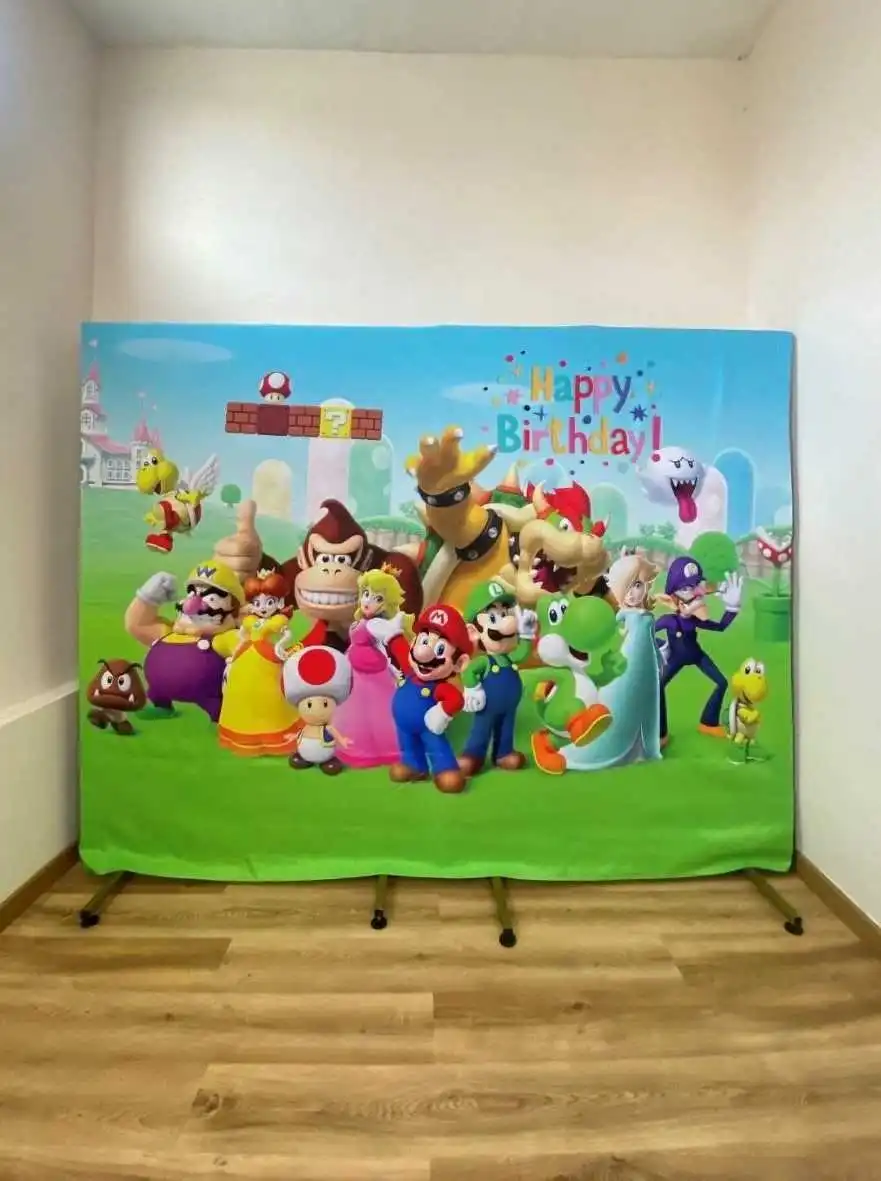 Backing metálico con forro de MARIO BROSS de 180 cms de alto x 240 cms de ancho