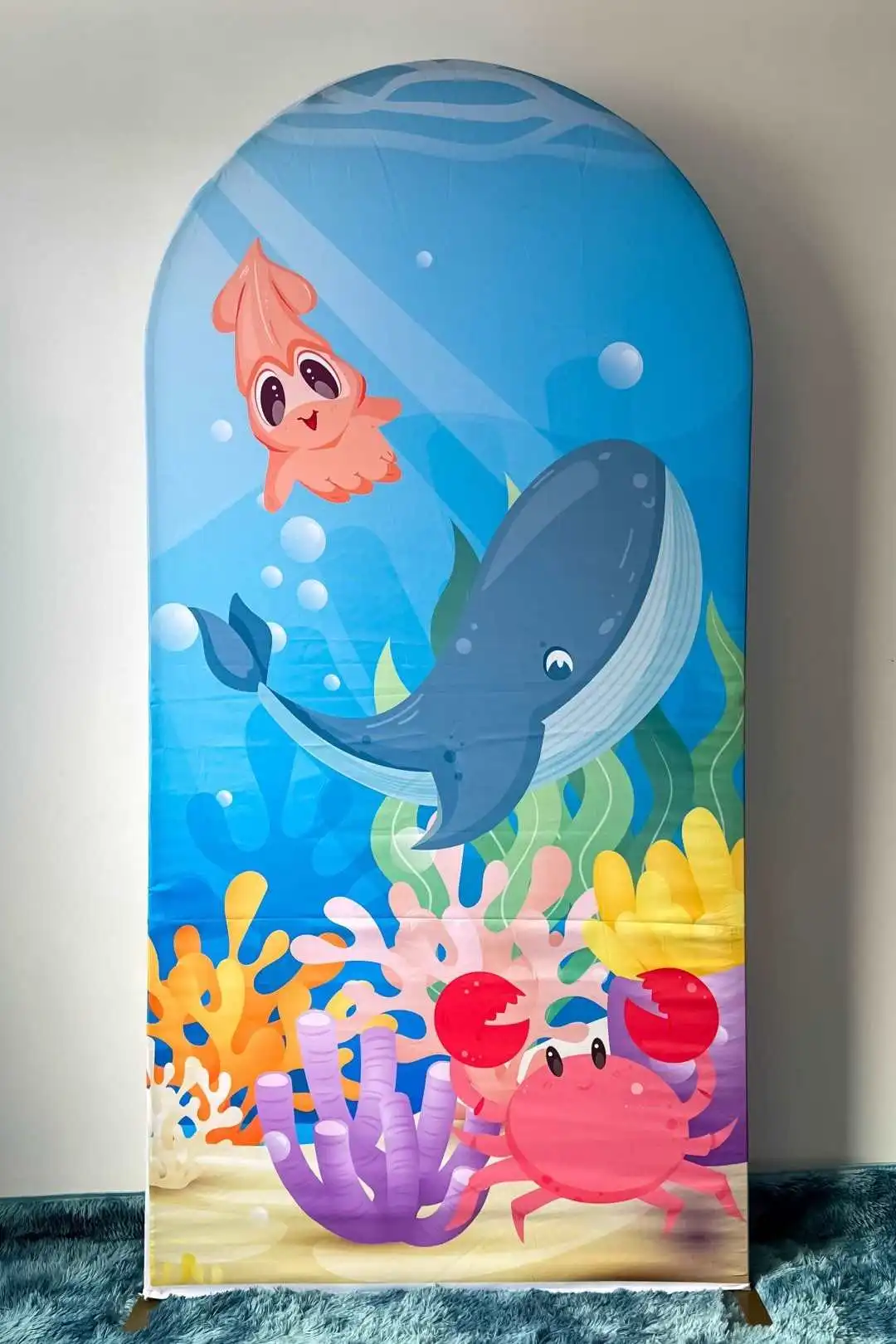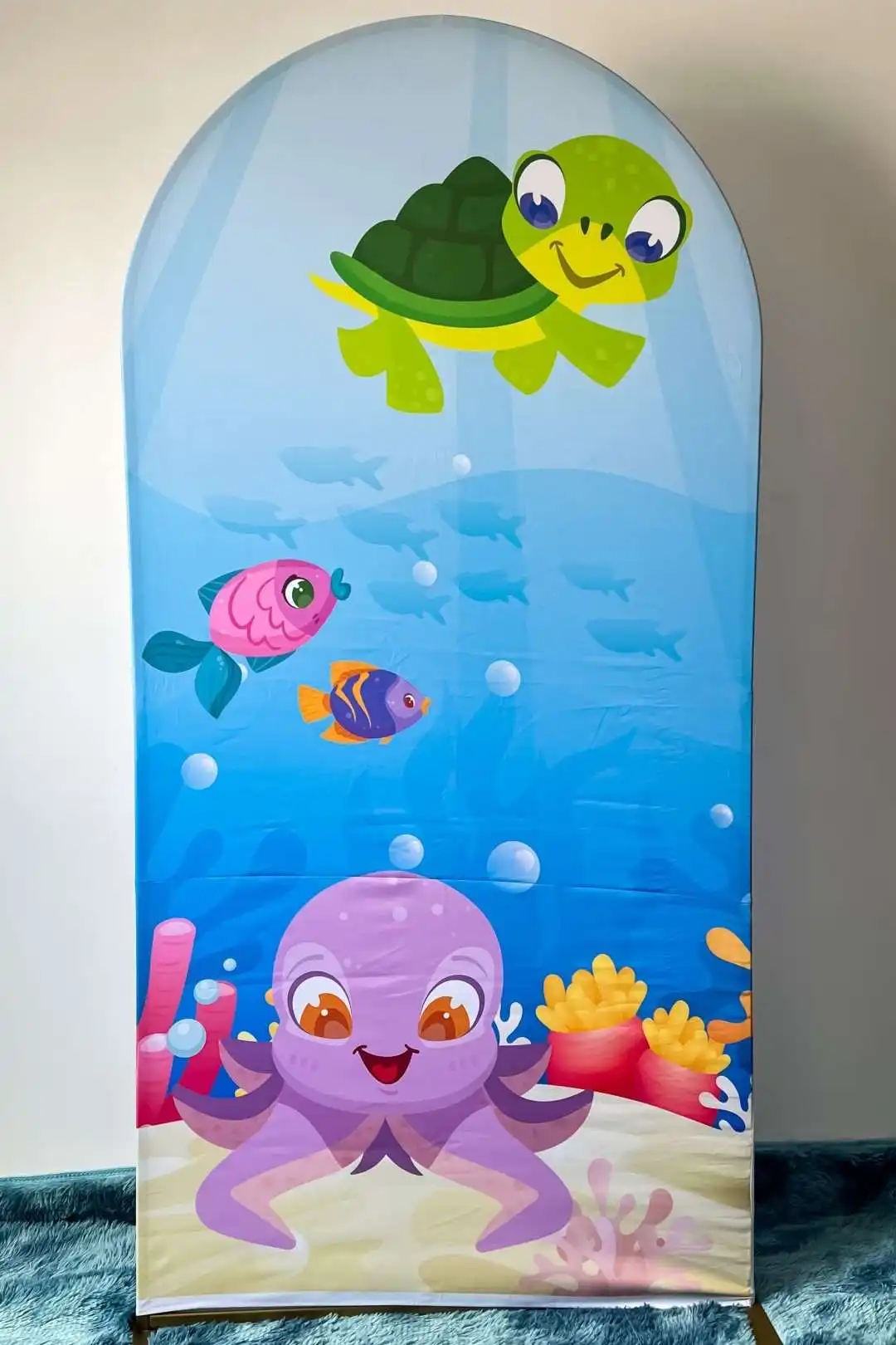 Backing Diseño Estructura en Arco con forro MARMOLADO AZUL