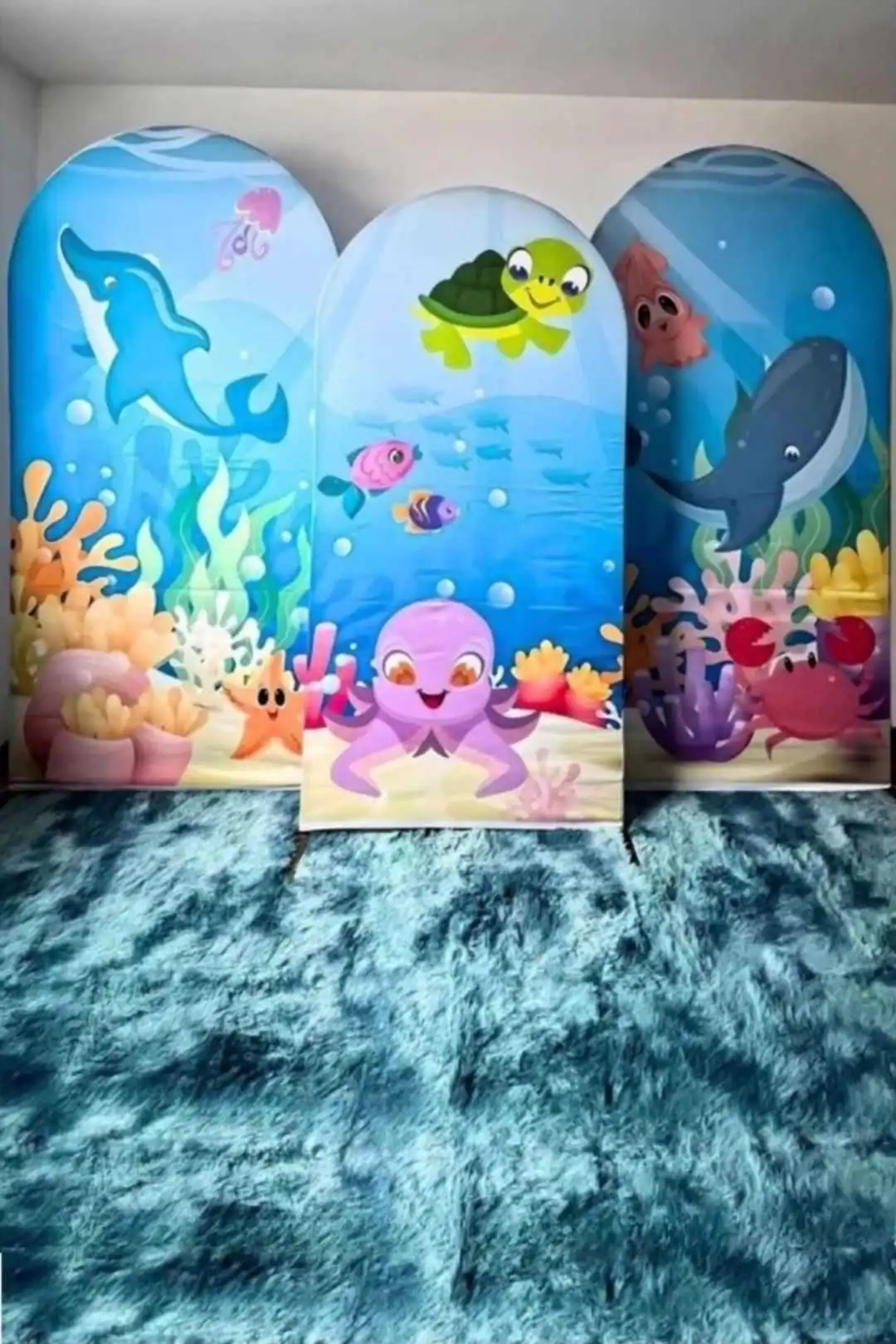 Backing metálico con forro de SIRENITA de 180 cms de alto x 240 cms de ancho