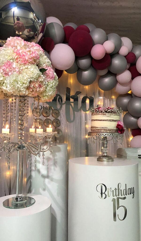 Diseñar y planear los QUINCE AÑOS de cada una de nuestras clientes, de acuerdo a la personalidad de cada una, en donde se sientan identificadas con cada detalle y que sean ellas reflejadas en este tan importante suceso de sus vidas, dándoles la tranquilidad que tienen un equipo profesional que los acompaña y guía en cada paso durante la planeación y ejecución, para así llegar a tener su día soñado en un lugar limpio, ordenado, con una distribución apropiada, con colores y tonalidades agradables, con mobiliario hermoso e innovador, para poder estar a gusto con los invitados, y en definitiva con uno misma.