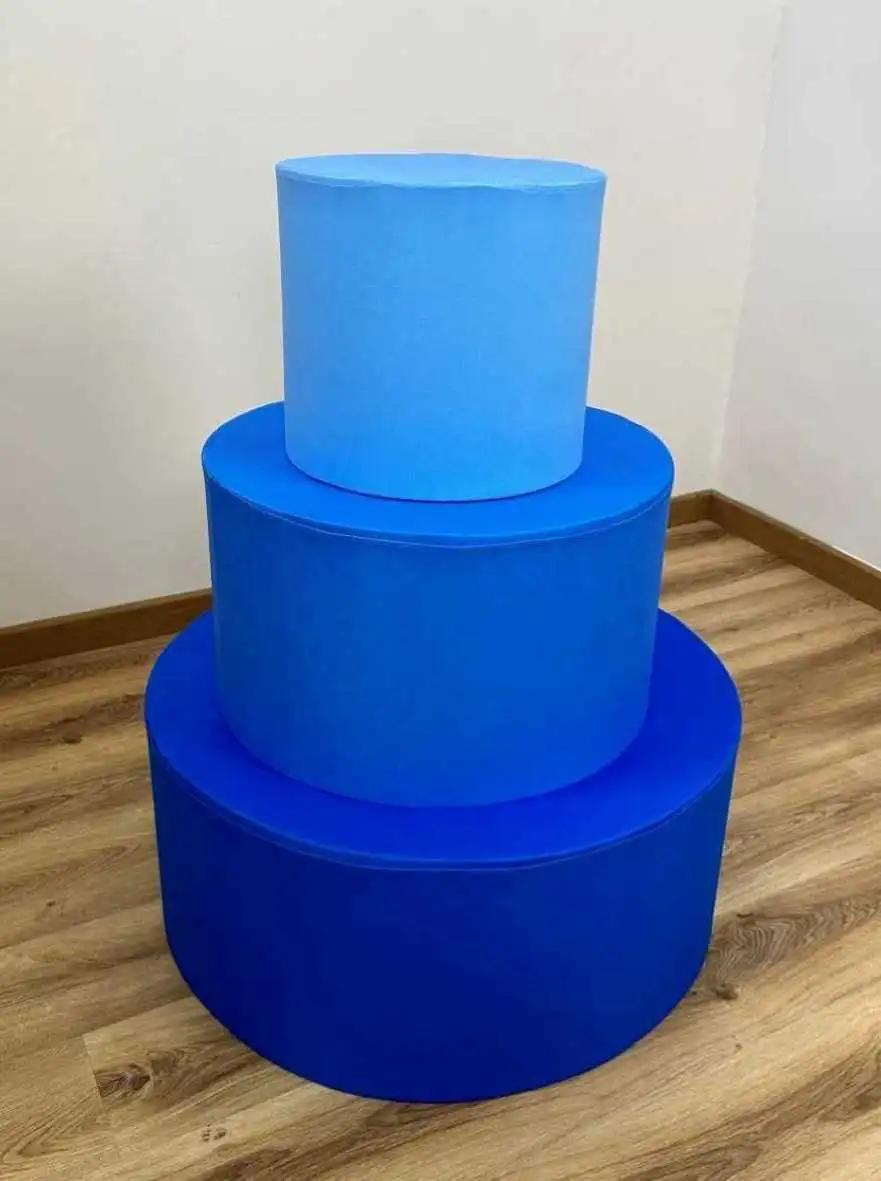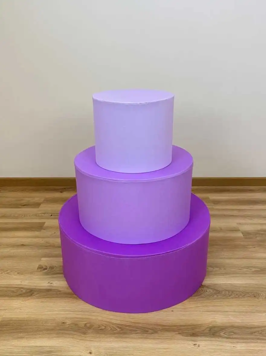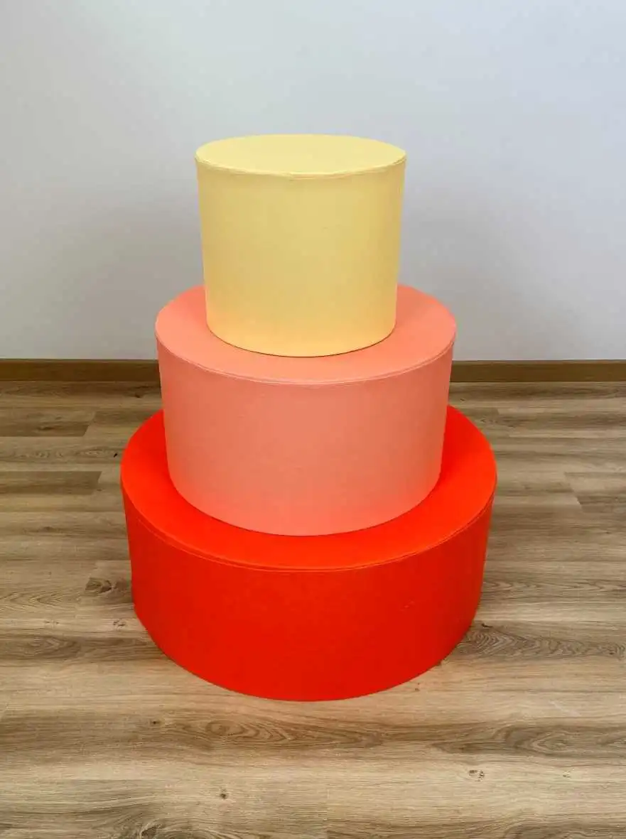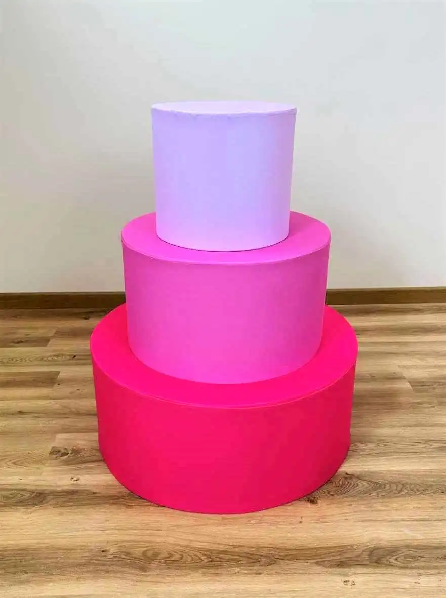 Set de 3 Cilindros en lámina de acero, diseño TORTA, colores blanco, Naranja, Azul, Fucsia, Nude, Verde y Violeta