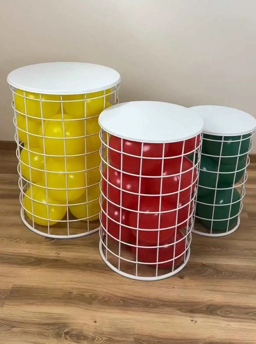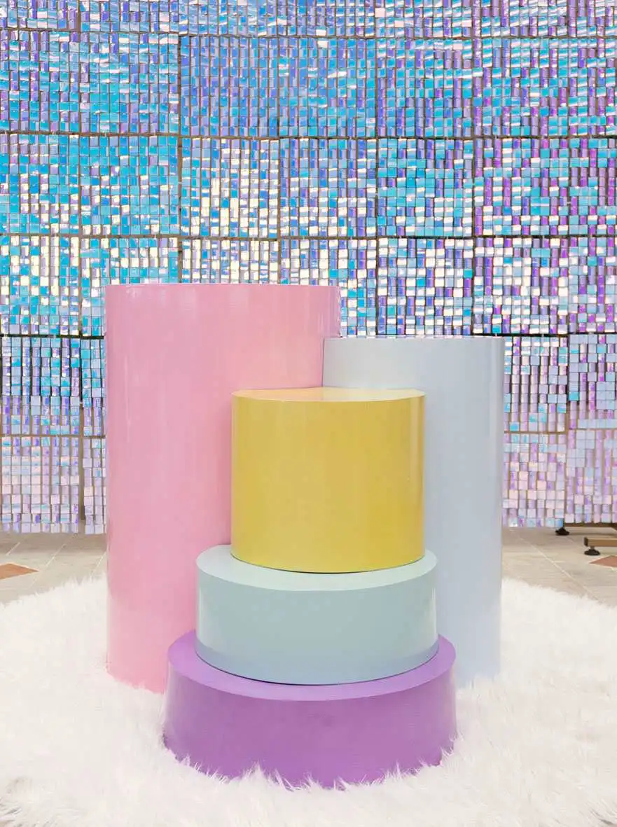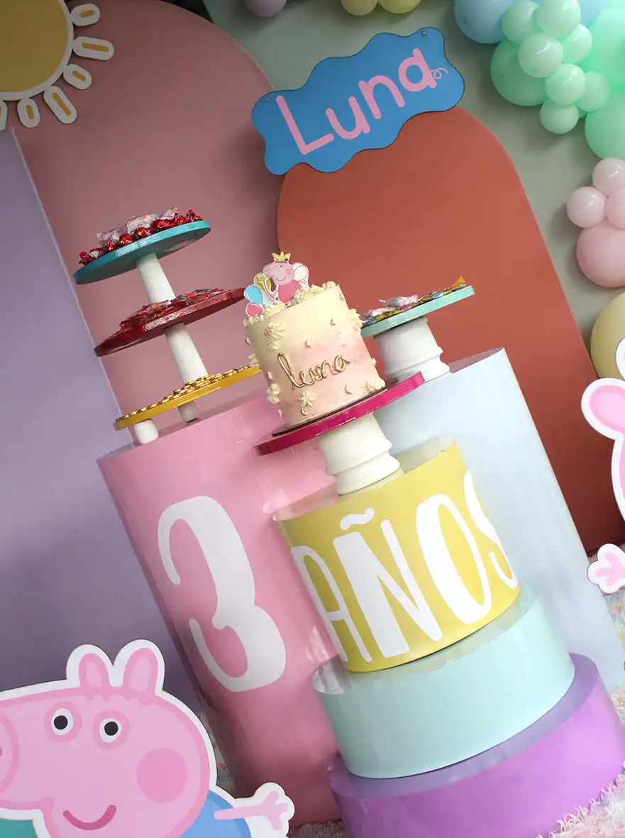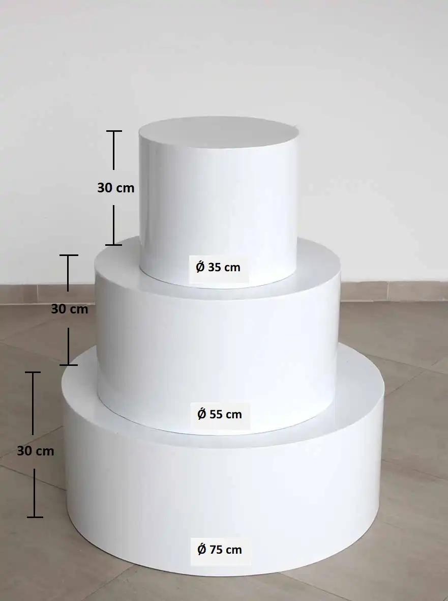 Set de 3 Cilindros en lámina de acero, diseño TORTA, colores blanco, Naranja, Azul, Fucsia, Nude, Verde y Violeta
