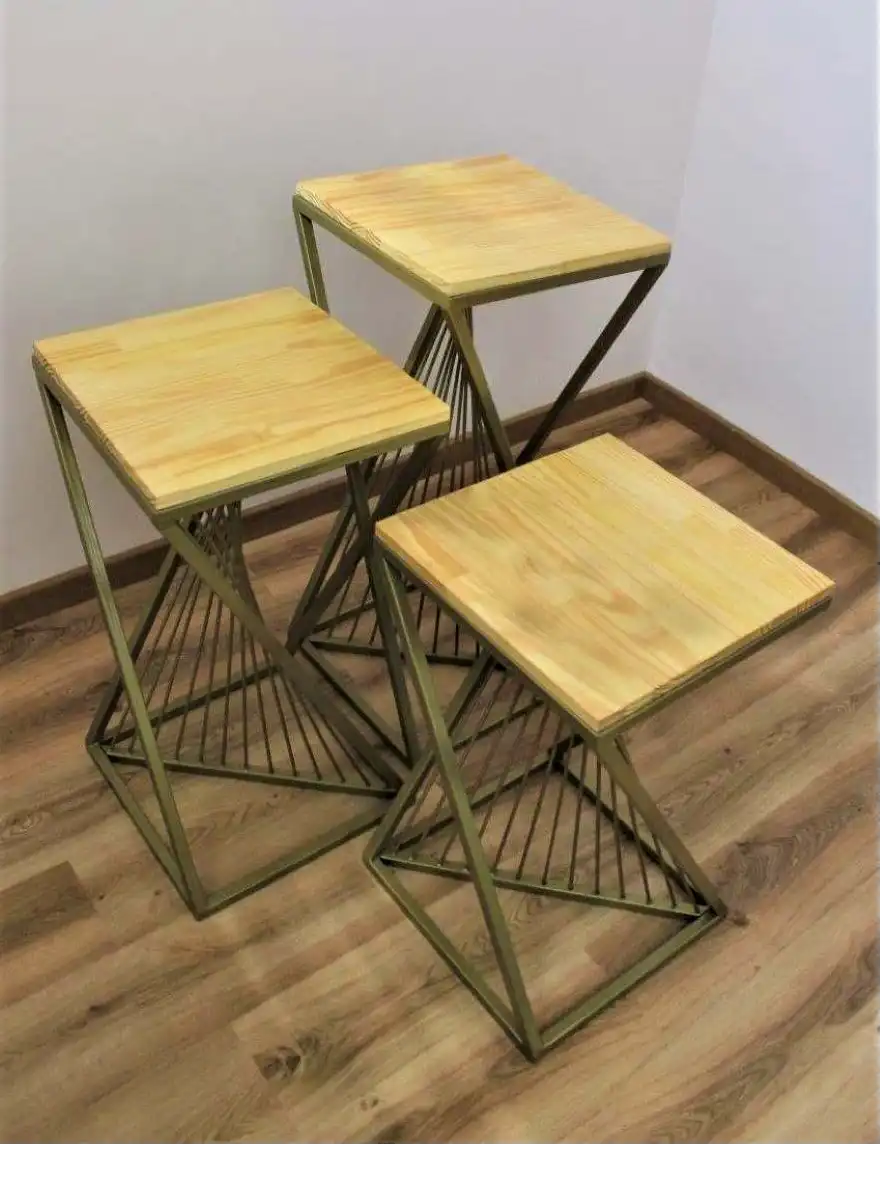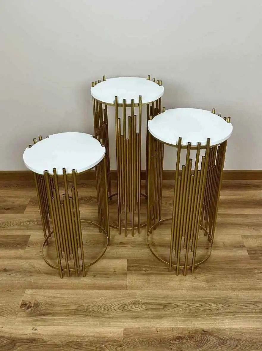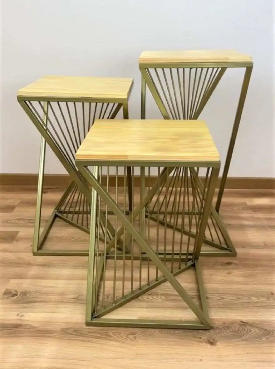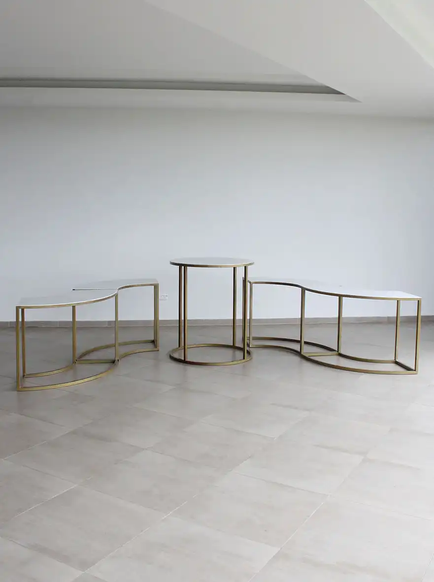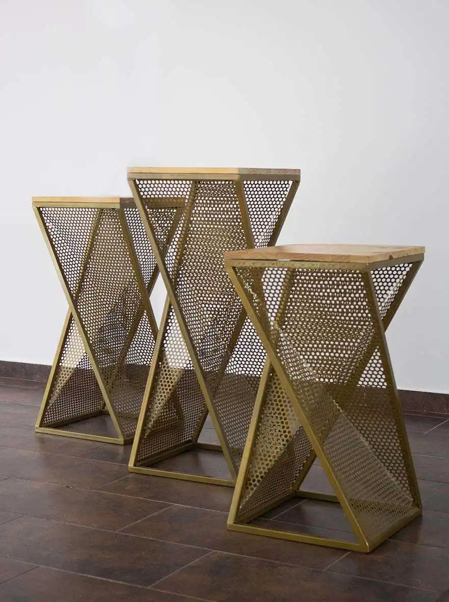 Set de 3 mesas de lujo, diseño GEOMETRIC MESH, color dorado