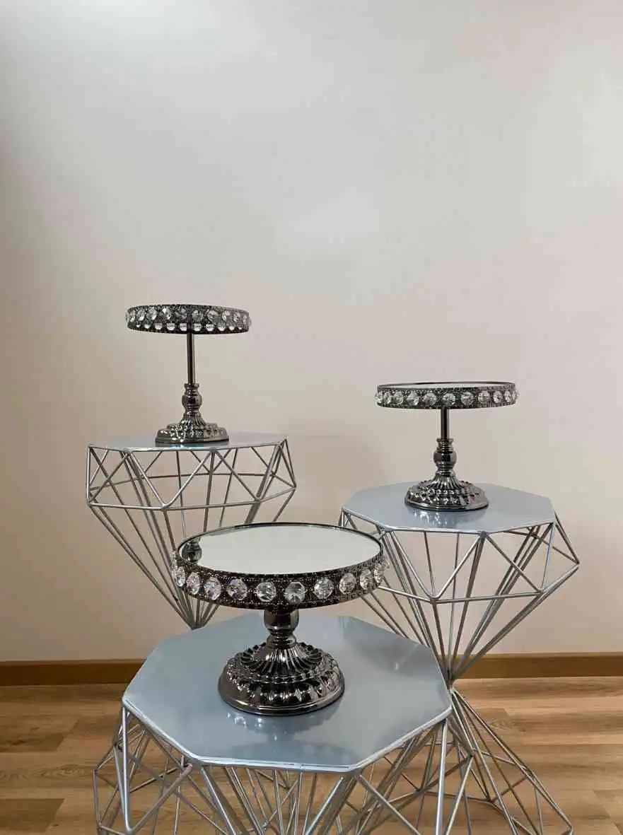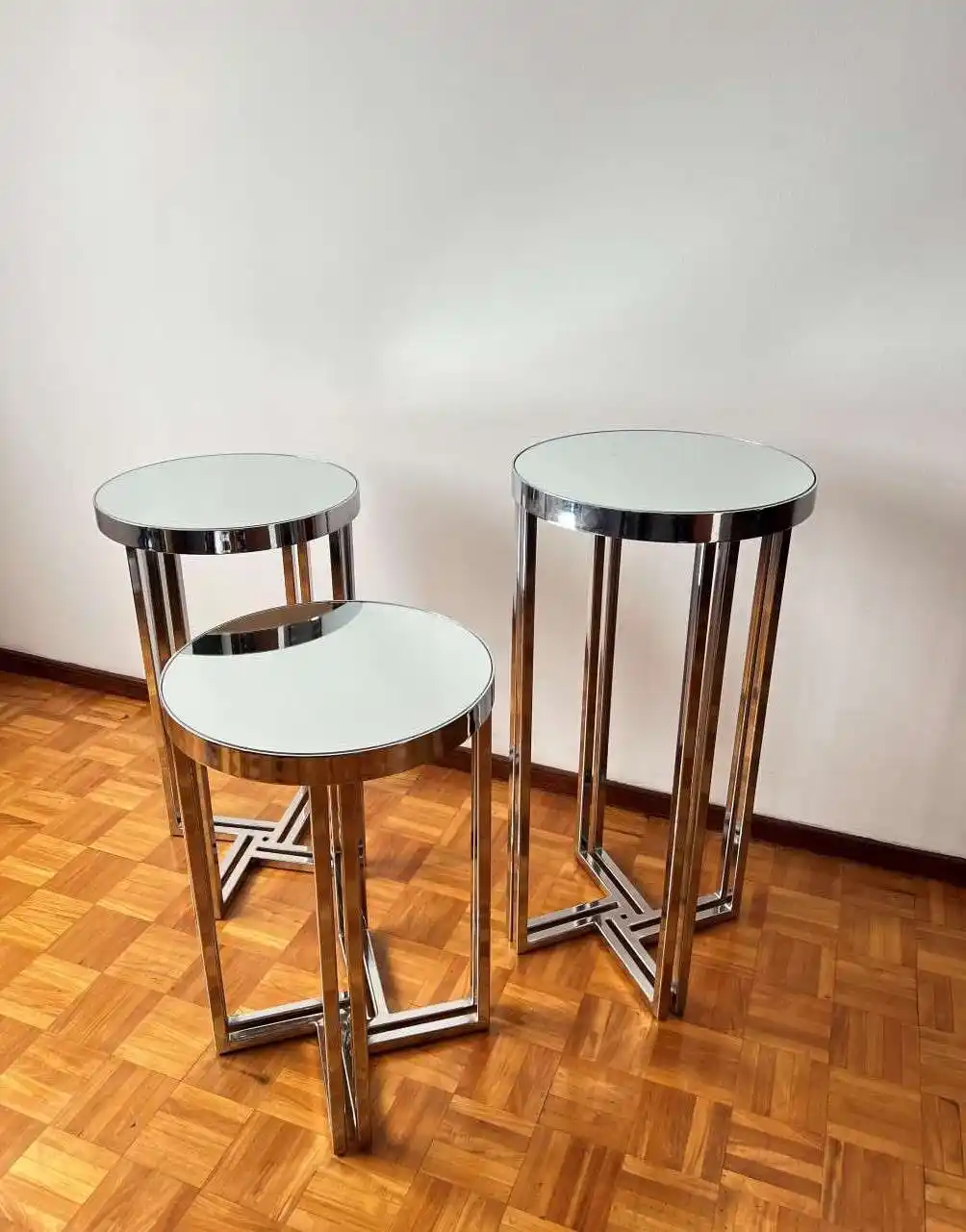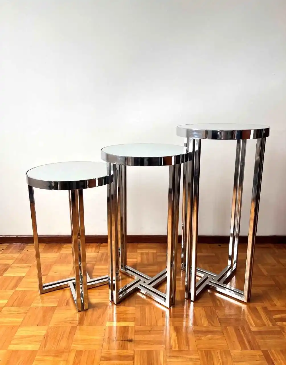 Set de 3 mesas auxiliares, diseño DIAMANTE, color plateado.