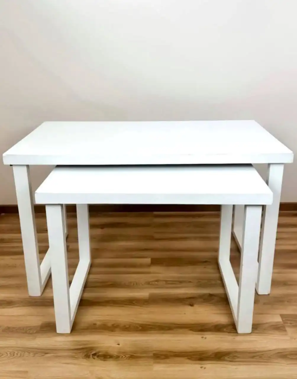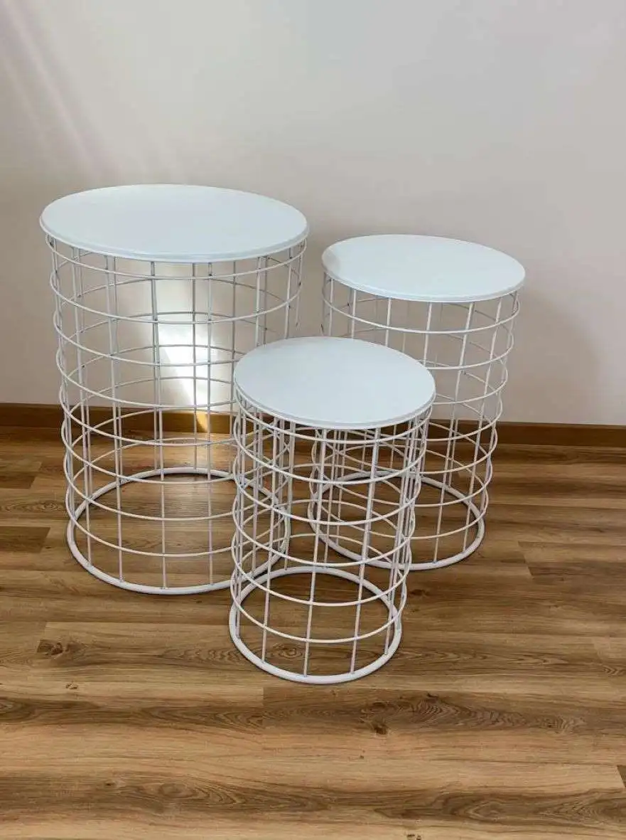 Set de 3 mesas auxiliares, diseño CIRCULAR GRID, color blanco