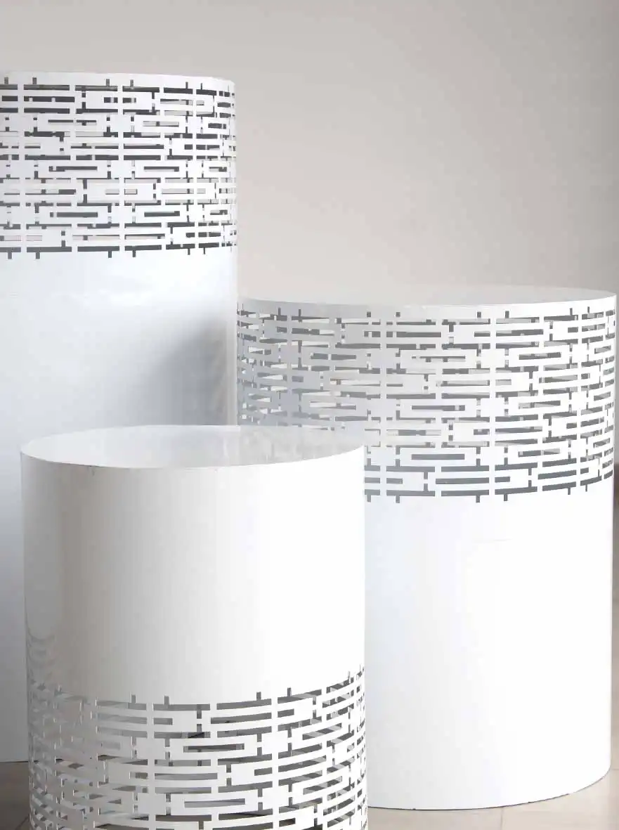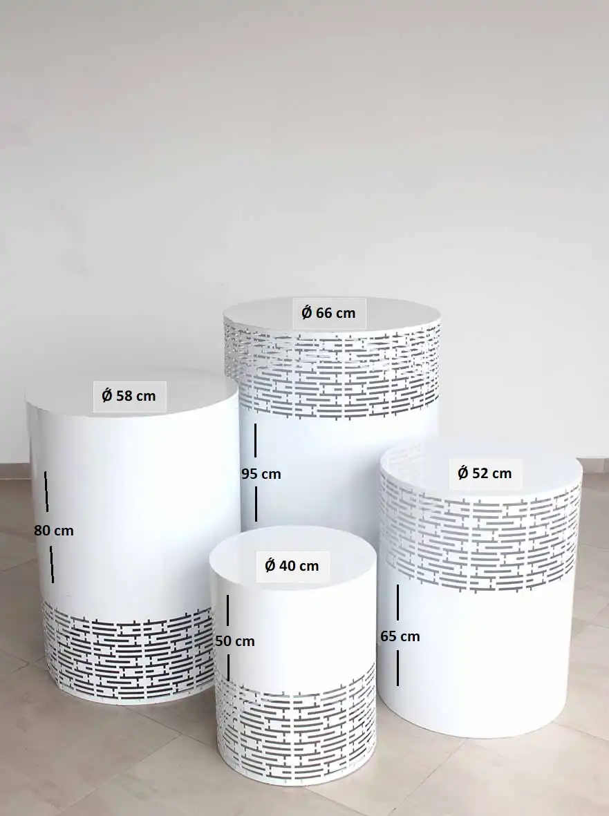 Set de 4 cilindros en MDF , diseño TUBULAR, color blanco