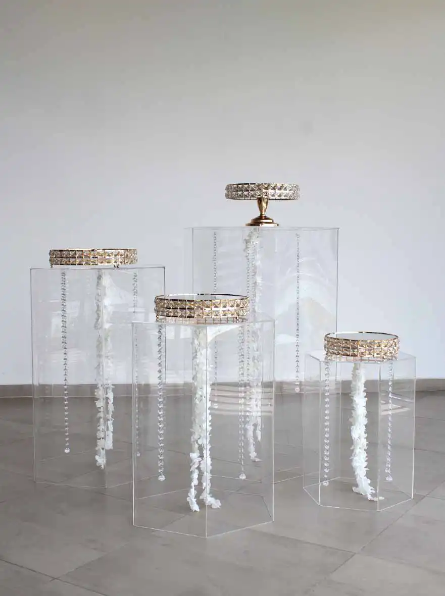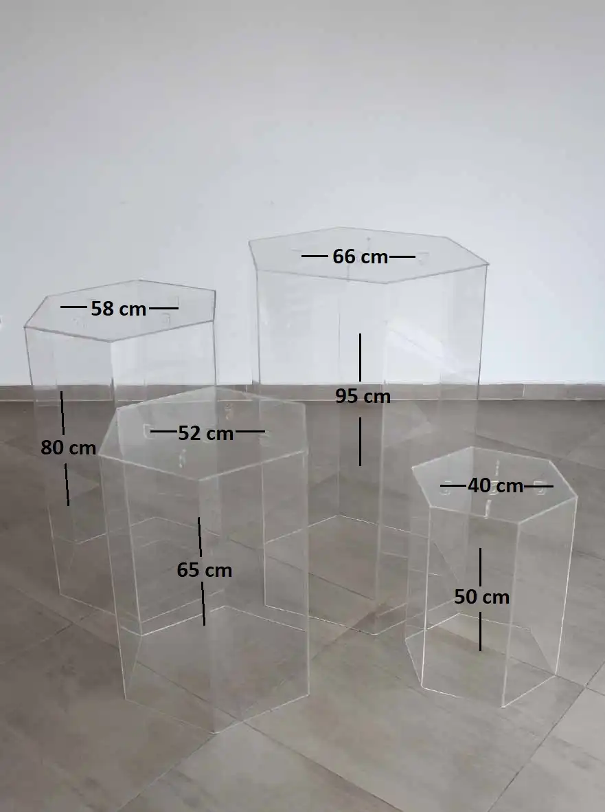 Set de 4 mesas acrílicas, diseño HEXAGONAL