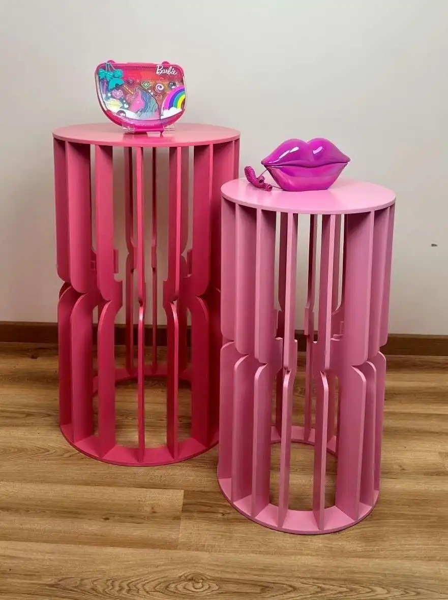 Set de 3 Cilindros en lámina de acero, diseño TORTA, color Rosado