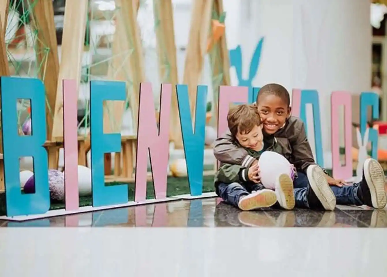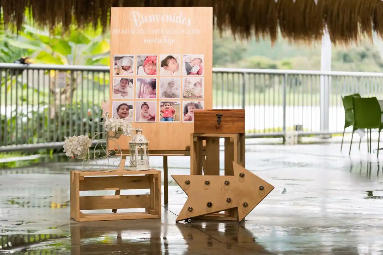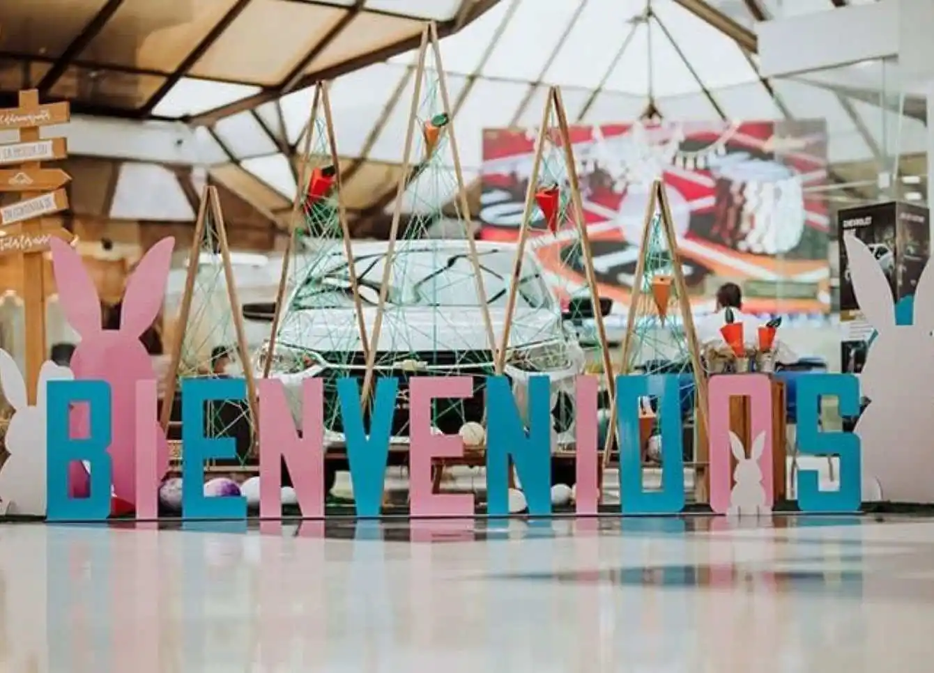 Letrero largo bienvenidos de 2.8mts en madera colores blanco, azul, rosa
