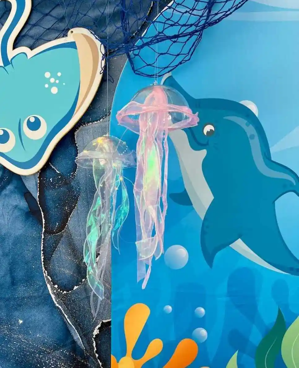 Medusa de mar con luces de 20 cms de ancho x 77 cms de largo