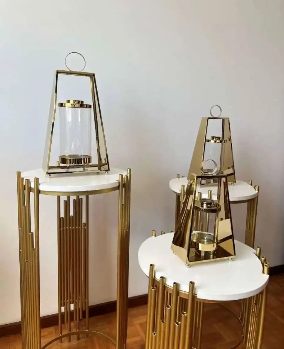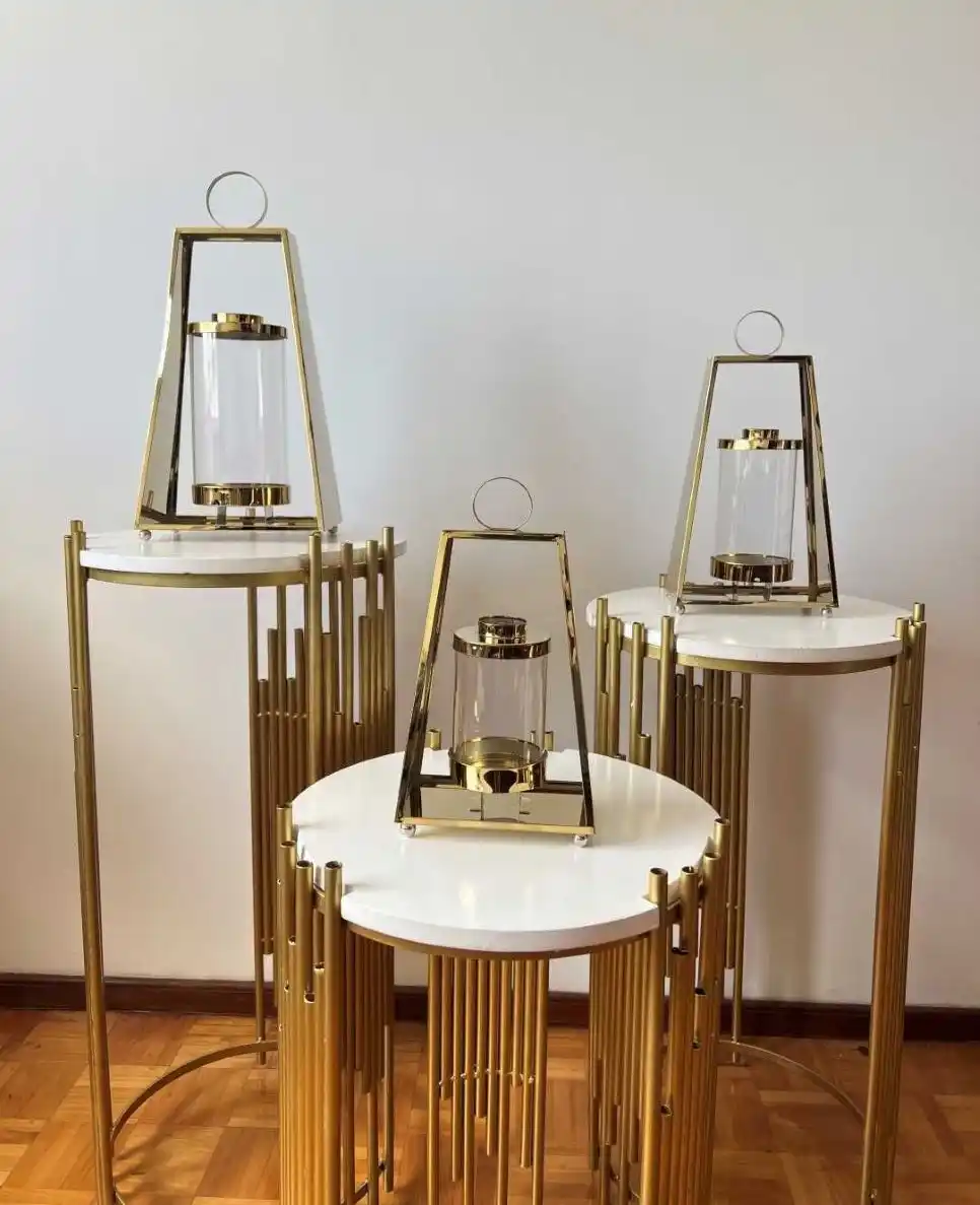 Faroles luxury en metal, color dorado (42, 35 y 29 cms)