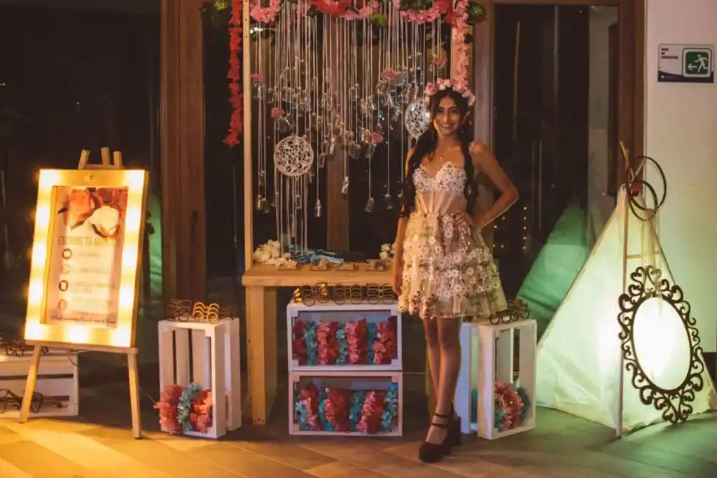 Número XV en color blanco, con bombillos en luz cálida (120 cms de alto)
