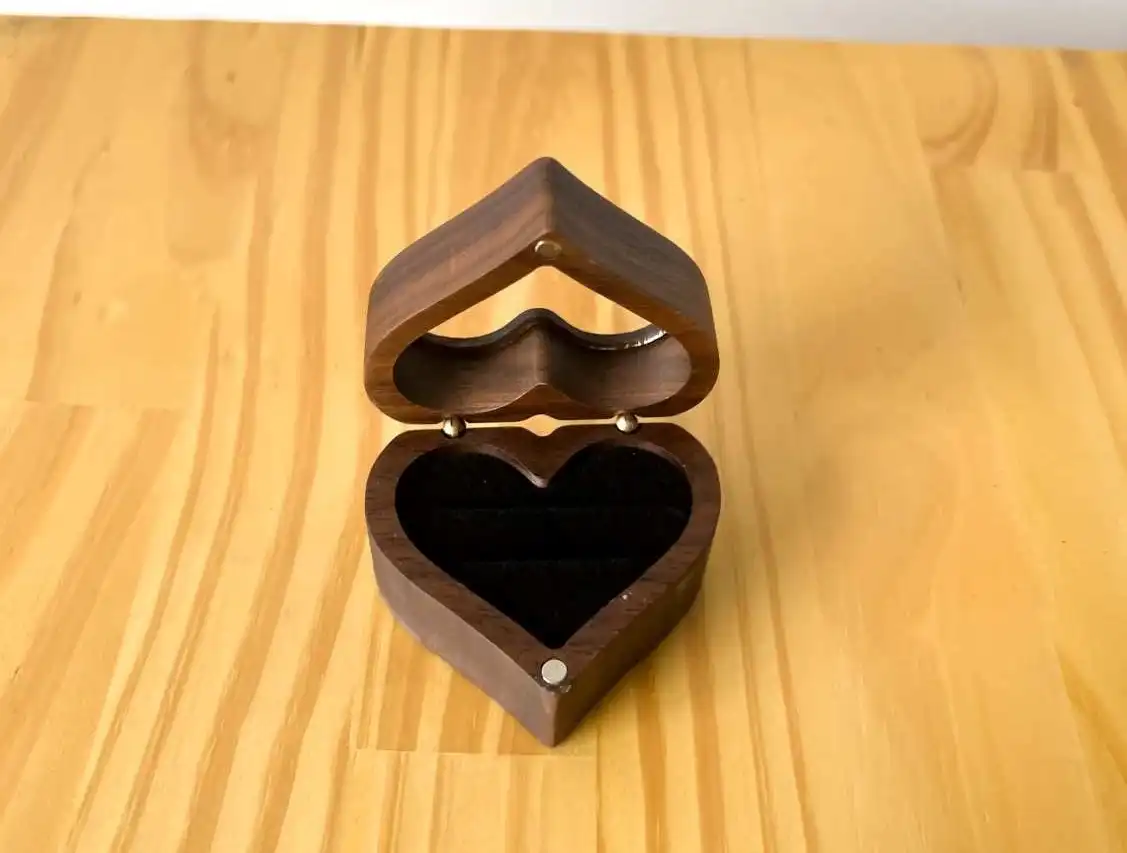 Porta argollas de madera con forma interna de doble corazón 11 cms x 6.5 cms