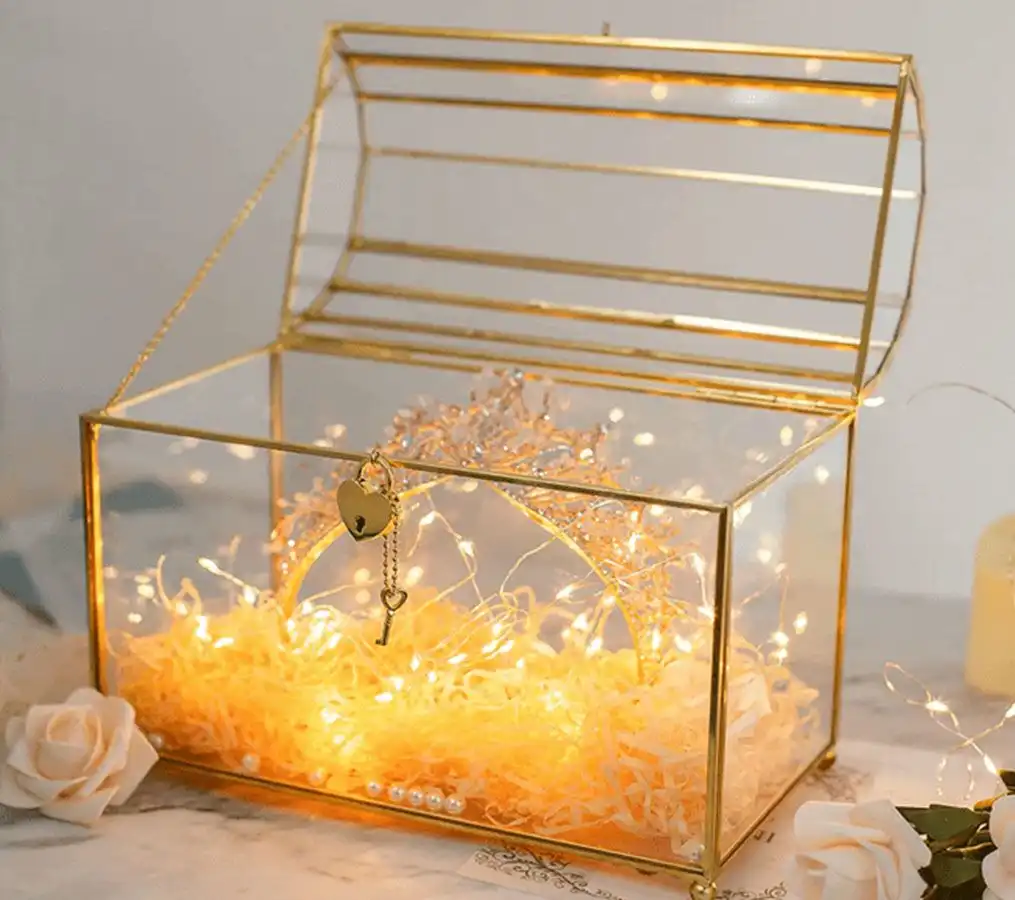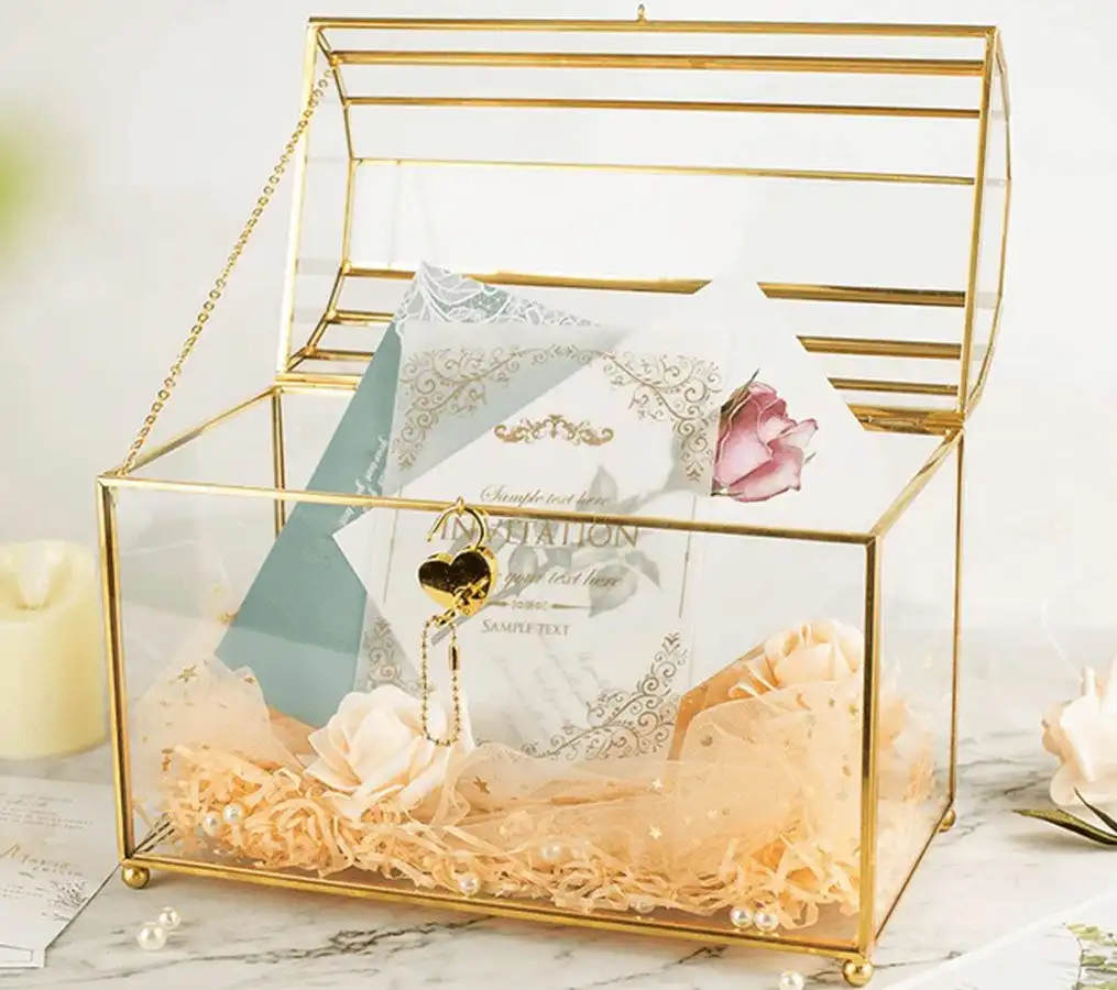Baúl de sobres en vidrio 25.5 cms x 20 cms