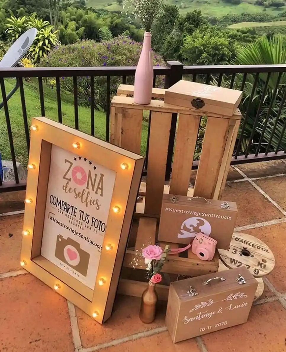 Porta argollas de madera con forma de corazon de 15 cms x 15 cms