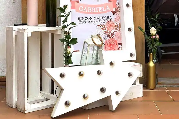 Cuadro de bombillos, color blanco de 60 cms de ancho x 80 cms de alto x 8 cms de profundidad
