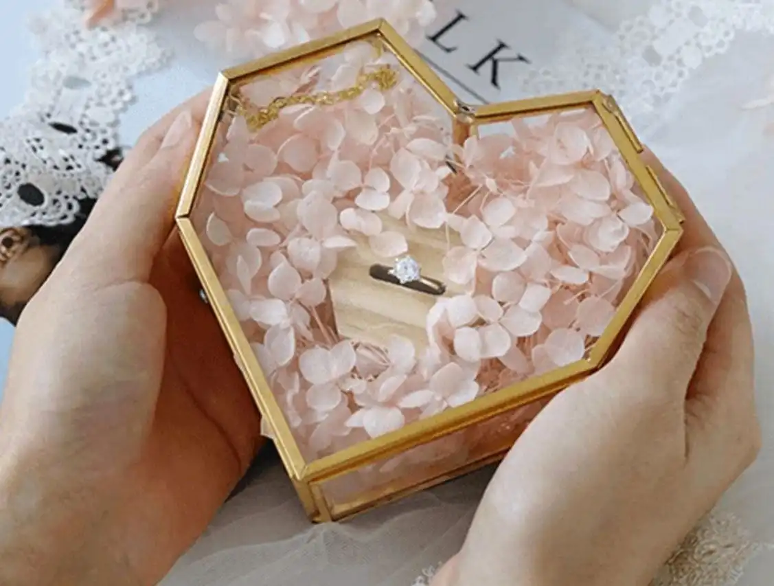Porta argollas de cristal con forma de corazón 12 cms x 12 cms