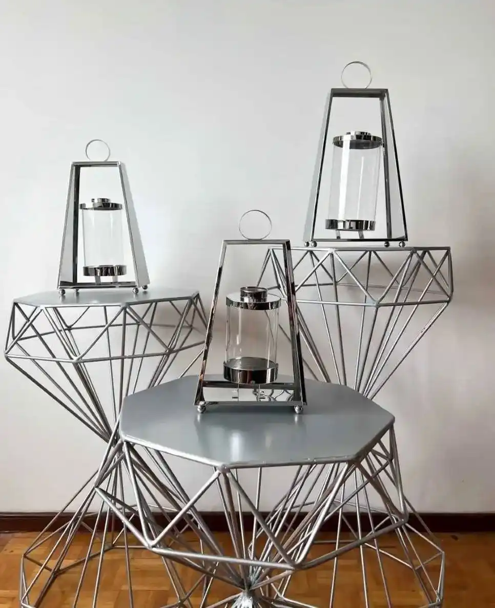 Faroles luxury en metal, color plateado (42, 35 y 29 cms)