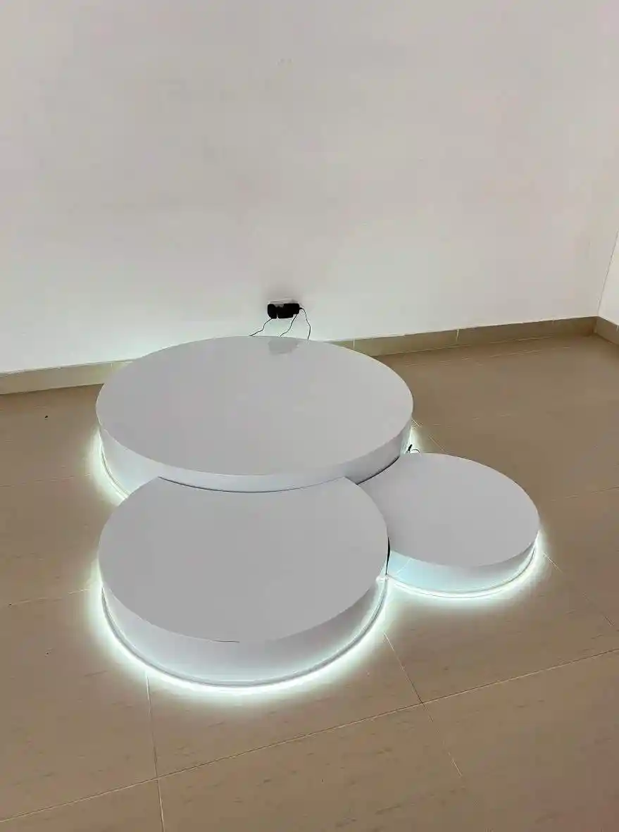 Tarima de aluminio en blanco, diseño TRILED CIRCLES (diámetro 120, 80 y 60 cms)